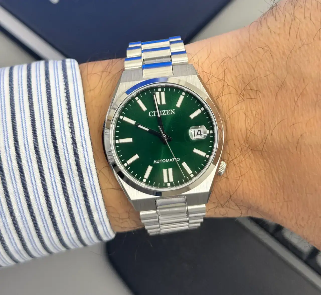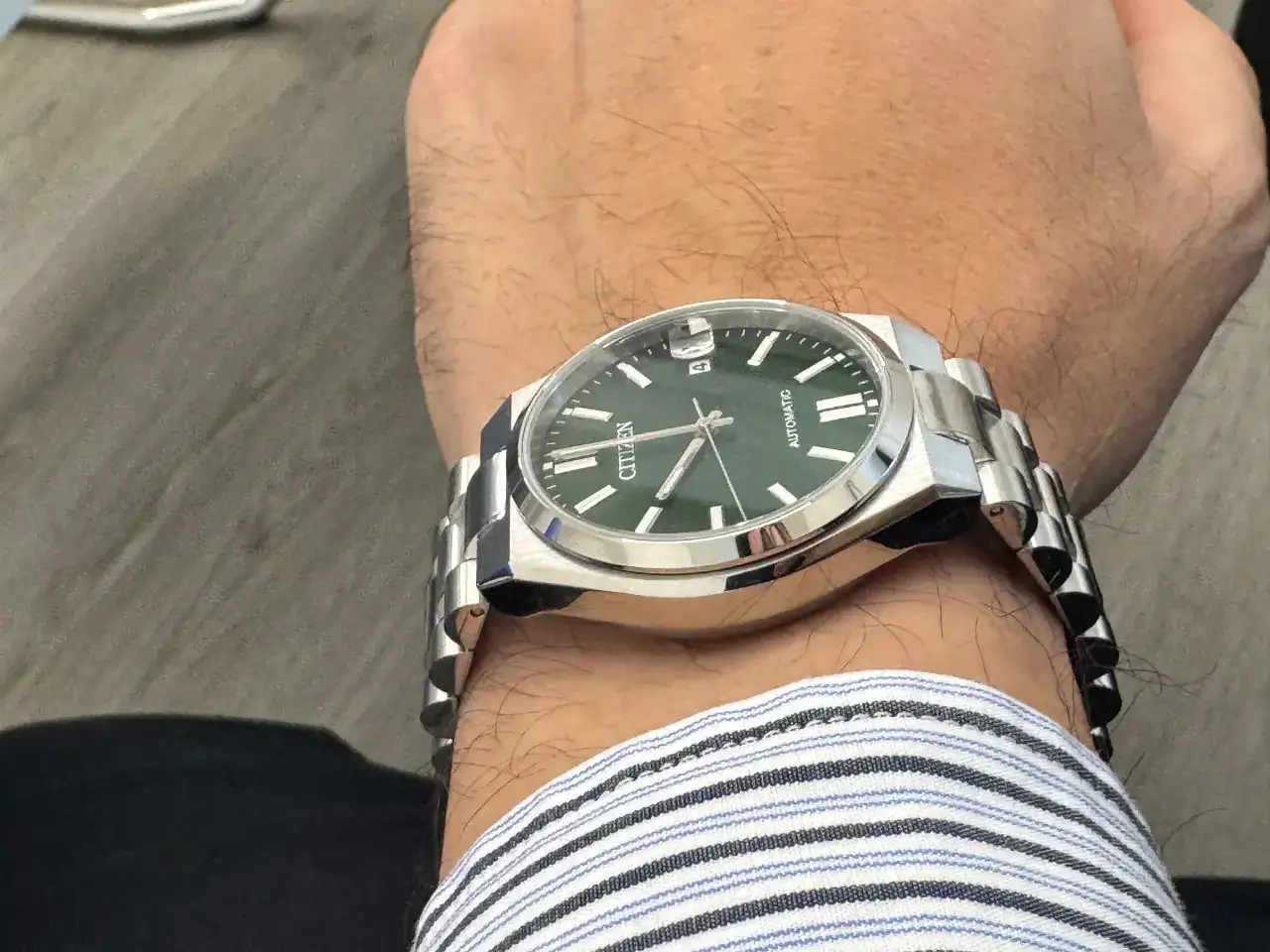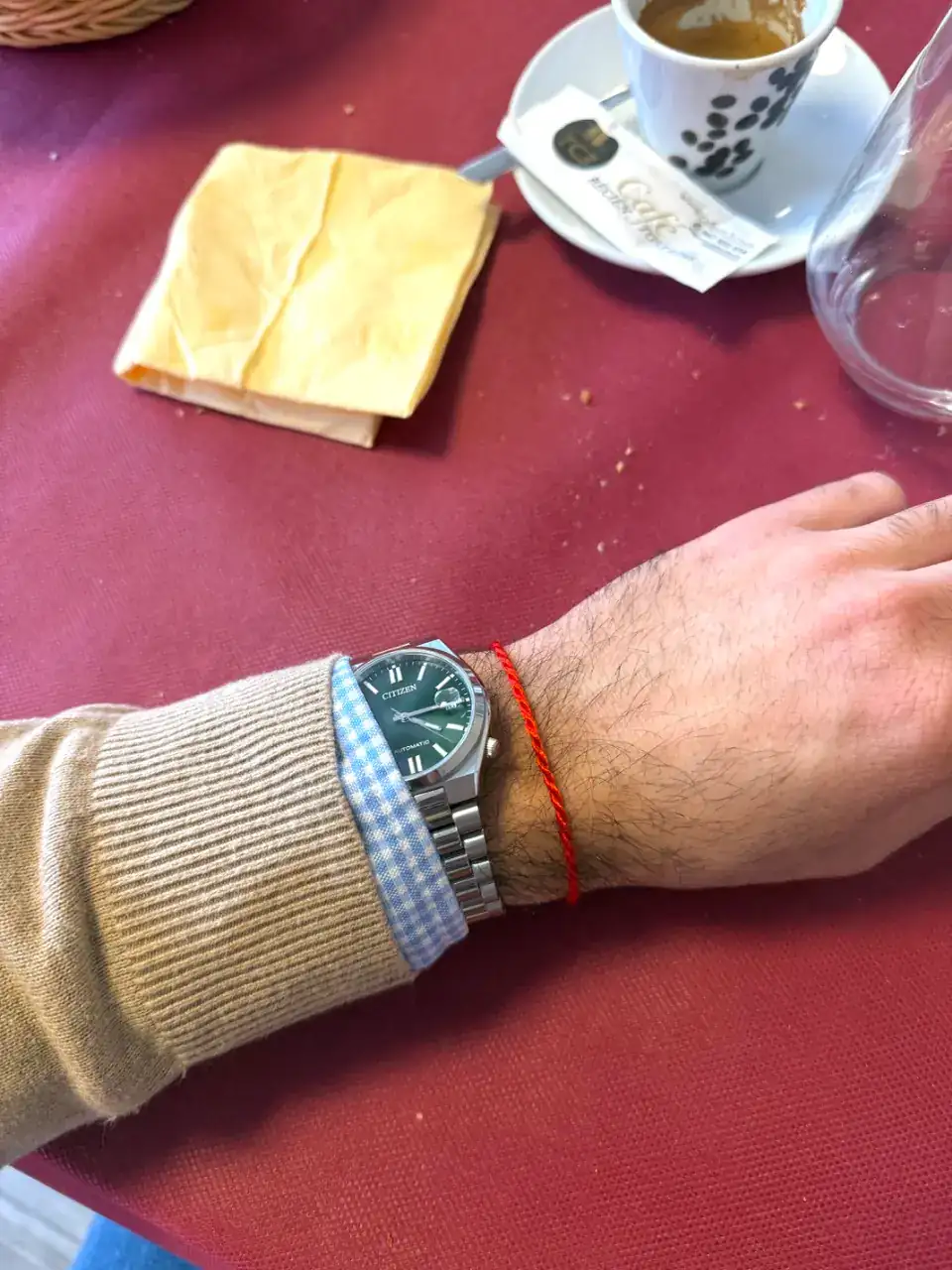 Este verde es precioso, un tono muy agraciado, muy legible. Te queda fenomenal en la muñeca