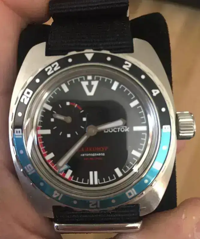 Y terminamos con la relojería soviética, en primer lugar el Vostok RE SE II-GMT de 2017, que no necesita presentación puesto que se realizó para este foro, sólo recordar que conmemoraba el 50 aniversario de la primera caminata espacial :