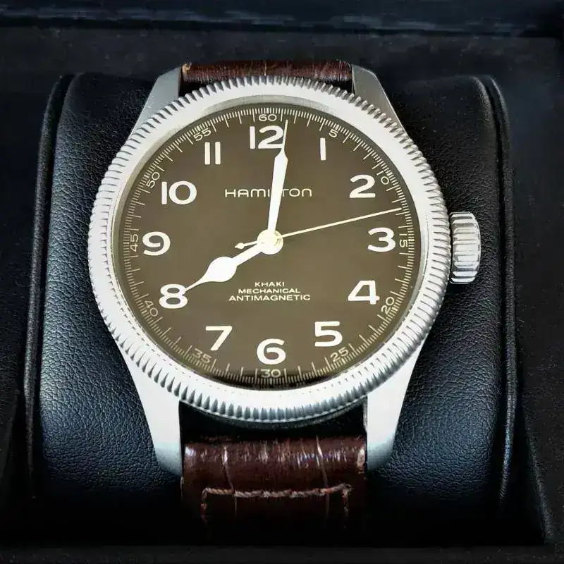 Pasamos ya a las firmas suizas con algo de pedigrí con un Hamilton Khaki Pioneer. Como me pasa con el cocktail, no lo uso demasiado ya que suelo ir con divers, pero aun así me parece una auténtica preciosidad. De todas las variantes que he visto del modelo esta me parece la más conseguida, por sus 42mm y sobretodo, por no llevar fechador, que en mi opinión lo hace mucho más bonito que el actual a la venta por ejemplo. Otra característica que me gusta respecto a los actuales es su maquinaría de remonte manual 2801-2, que creo encaja mucho mejor con la filosofía del reloj.