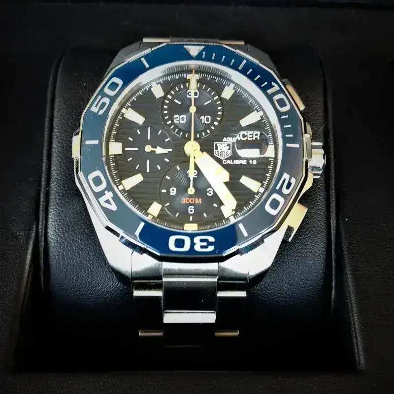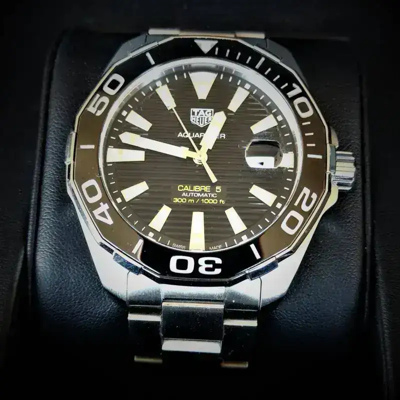 Se trata de un Tag Heuer Aquaracer calibre 5 de 43mm que me gusta tanto como el primer día, como ella (por si lo lee).