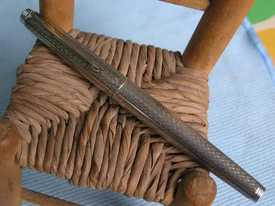 El modelo Chevrón Sterling está fabricado en Francia, es de plata maciza y lleva el típico plumín 75 con inscripciones francesas.