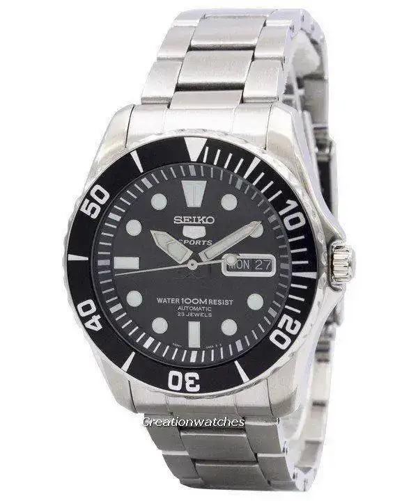 - Un Seiko 5 Sports de 41 mm, automatico 23 jewels, esfera negra, correa de acero (ya tiene más de 5 años).