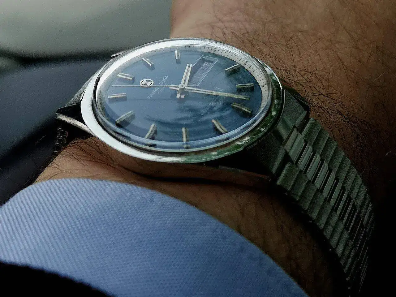 Hoy os muestro un Favre Leuba day date con 36000 alternancias, que es una delicia escuchar sus rápidos latidos. Una pieza de cuando Favre Leuba era una casa relojera reputada y conseguía importantes logros para la industria relojera. En este caso os muestro un Harpoon II que late como os decía a 36000 alternancias hora, regalo de mi madre en el año 1976.