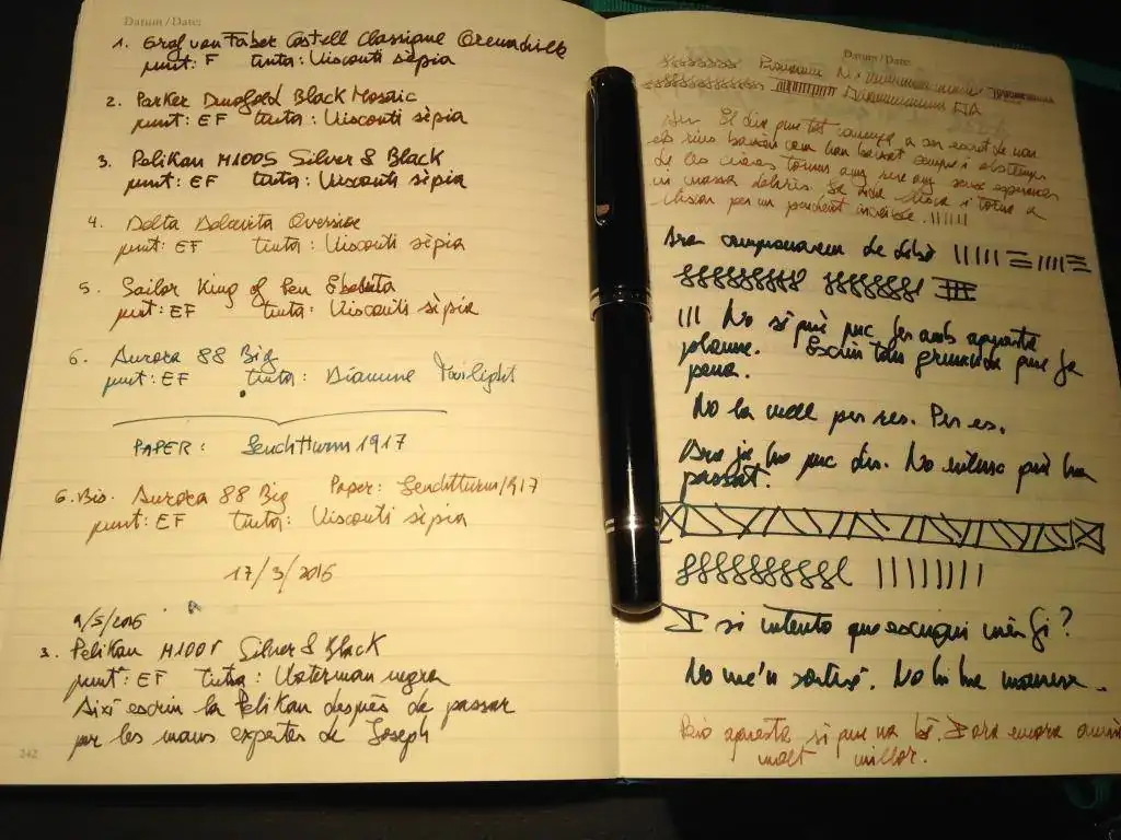 Ahora tengo una Pelikan M1005 que em encanta y a la que no tengo nada que objetar, con lo que podré utilizarla al lado de la Delta Oversize, la Sailor KOP y la Aurora 88. Estoy contento.