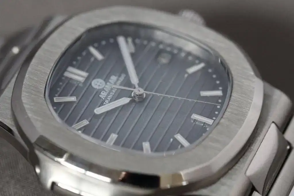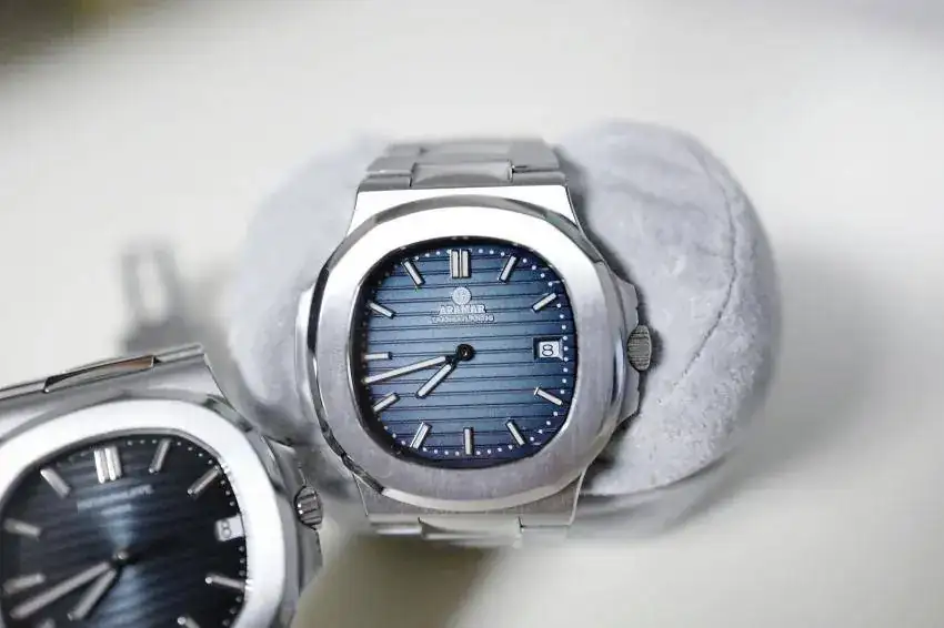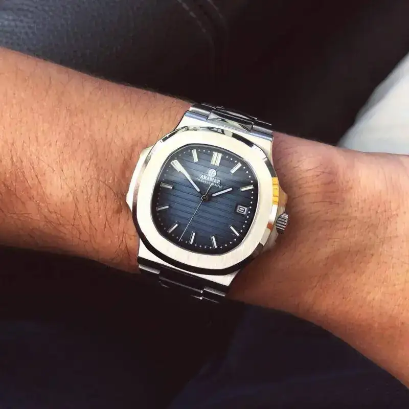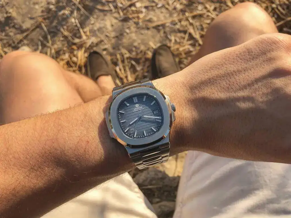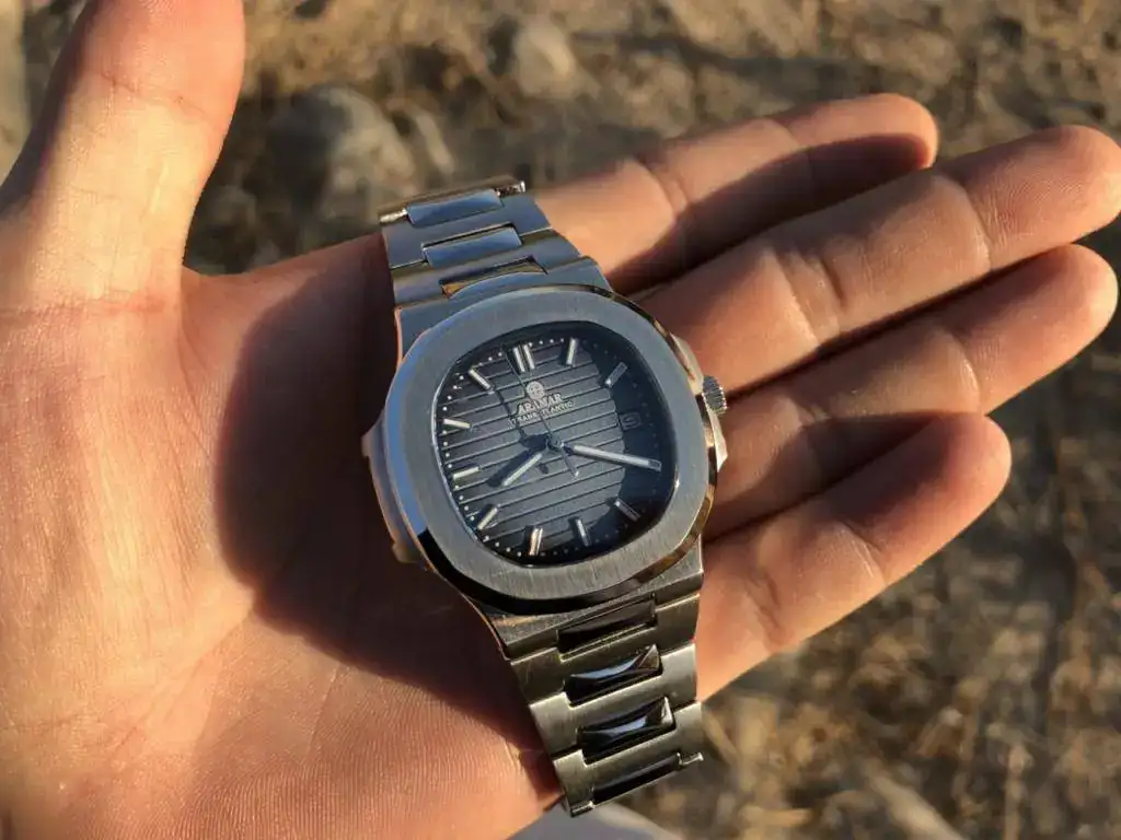 Lo que me hizo apretar el gatillo fue una conversación que mantuve con un coleccionista de Patek que tuvo el anterior modelo en cuarzo y que además compró este en cuanto salió. Me dijo que los 2 modelos tenían muy buena calidad y que él disfrutaba por igual tanto el Patek como el Aramar. Así que si un coleccionista podía disfrutar sin complejos de una copia de uno de sus modelos, ¿quién era yo para no hacerlo?. Aquí os dejo unas fotos del anterior modelo de cuarzo junto a su Nautilus.