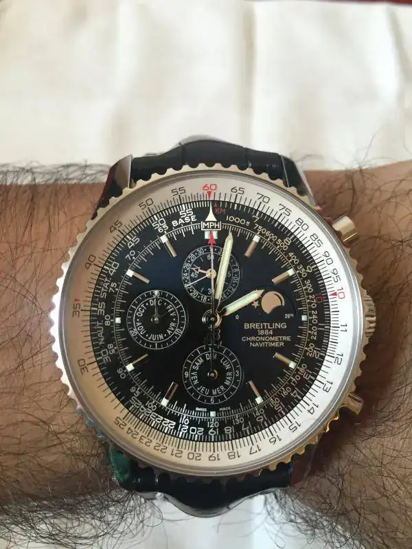 Breitling Navitimer: La complicación de cronógrafo, fases lunares y calendario semi-perpetuo en conjunto con su clásico diseñó lo hacen un ejemplar deportivo y elegante al mismo tiempo