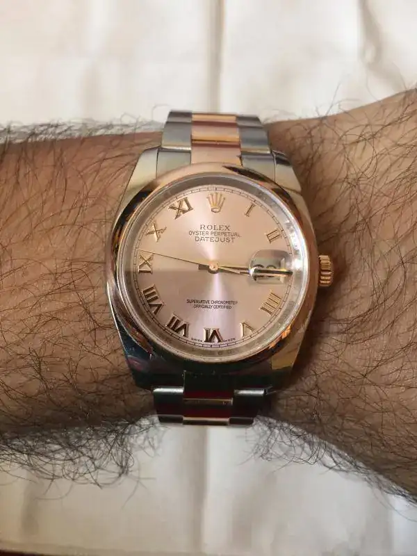 Rolex Datejust: Un reloj formal y de bonita combinación oro rosa-acero adicionando al tomo de su esfera. Un clásico que nunca fallará