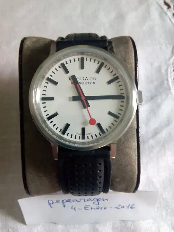 El reloj cuenta con cristal de zafiro con AR y la caja es cepillada. Se entrega con la correa de cuero original Mondaine, la cual a tenido una puesta, y una de silicona negra que es la que lleva en la fotos. Con todas sus cajas y documentación. Proviene de concesionario nacional.