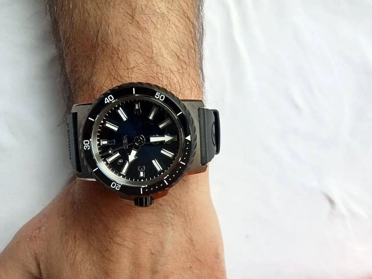 Buenos días compañer@s, algunas marcas se han dedicado a sacar auténticos "monstruos", para llevar en muñecas que jamás...por muy grandes que sean, y entre ellas incluyo la mía en la cual cabe un (Oris Prodiver Chronograph Professional 51mm.), tienen sentido. Modelos como el "Rolex deepsea challenge" 12.000m., o su primo hermano "Omega ultra deep", 15.000m. profundidades que nos parecen increíbles... qué ser humano es capaz de alcanzar esas profundidades?... un disparate, por no hablar de la incomodidad de poder llevar esos modelos y su estética que para nada es ponible. En fin, me imagino que la producción de estos relojes, será muy limitada por no hablar de los precios, que seguramente serán iguales a las profundidades que alcanzan.