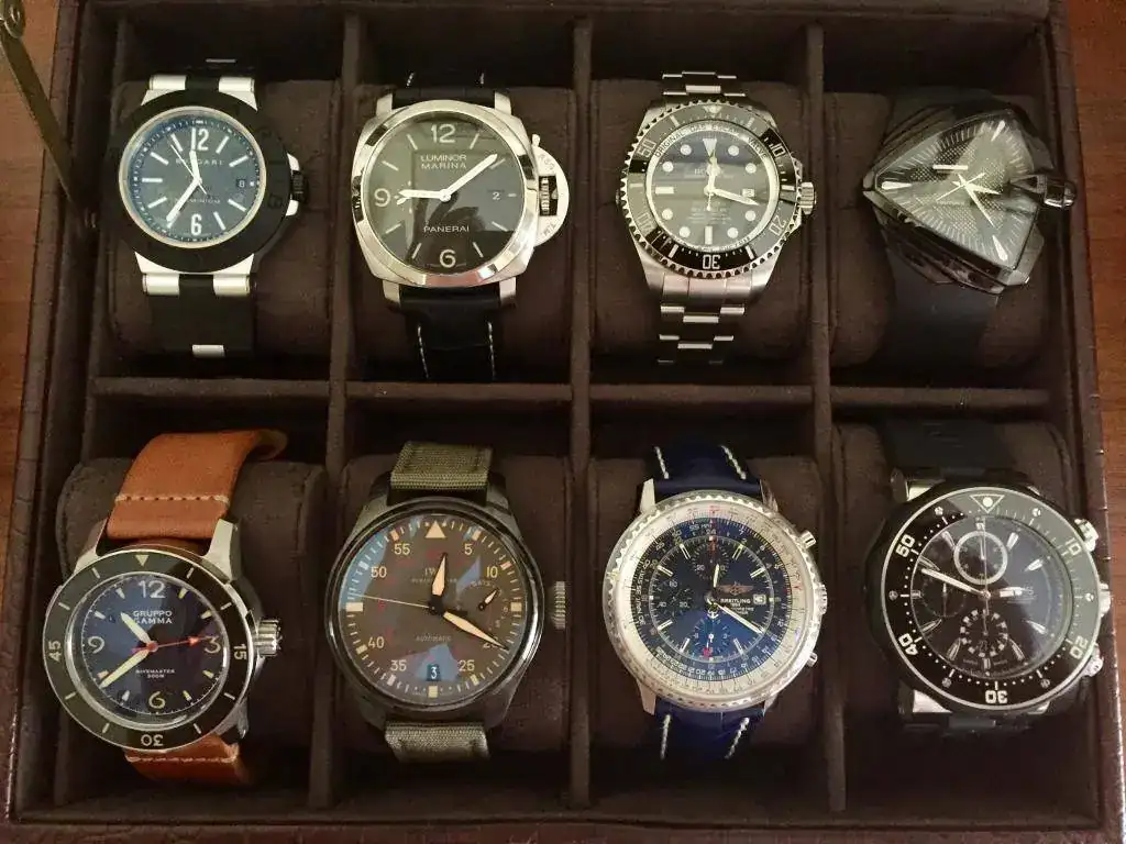 Buen gusto y calidad a raudales. ¿Puedes decirme qué modelo es el que está entre al Planet Ocean crono y el Tag Heuer?. Un saludo.Magnífica caja compañero.Buen gusto y calidad a raudales. ¿Puedes decirme qué modelo es el que está entre al Planet Ocean crono y el Tag Heuer?. Un saludo.