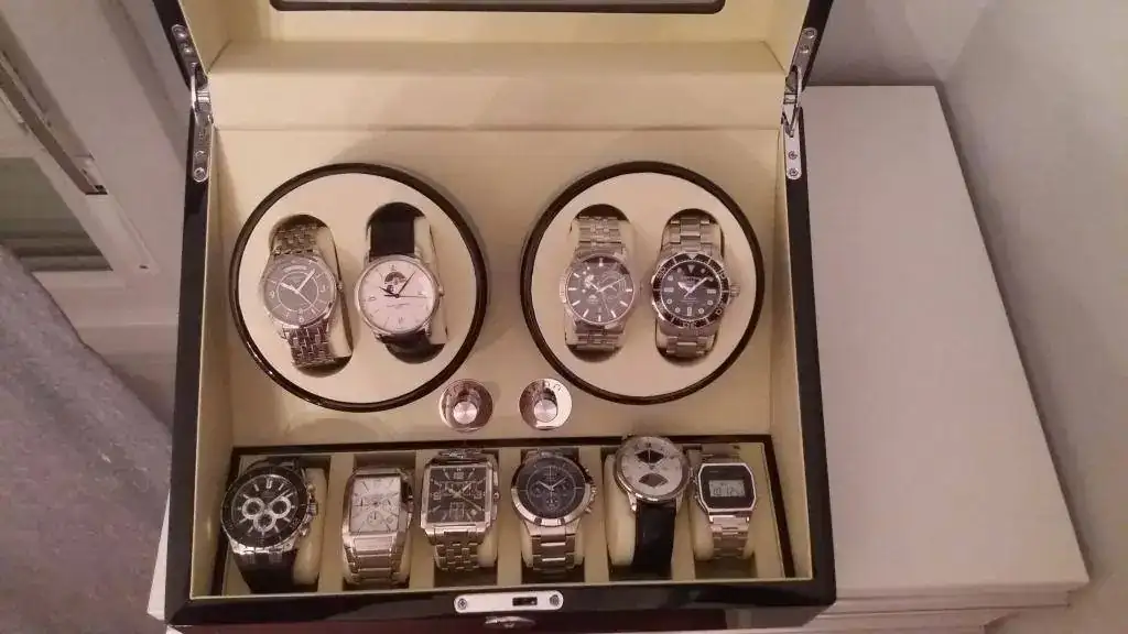 Comparado con lo que se ve por aqui me siento un poco boxtroll con mi caja [emoji23] [emoji23]Al final me animo y muestro la mía, dando vueltas los automáticos y en la fila de abajo los cuarzo.