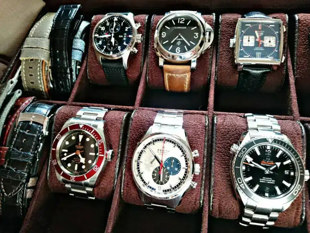 Más a la izquierda los vintage heredados, un Omega Seamaster de oro de 1949 y un Longines de acero de los 60, creo. El Omega para ocasiones muy muy especiales ( bodas, etc) y el Longines para ocasiones formales de trabajo: conferencias, reuniones con clientes más estirados, jornadas de la empresa, viajes... Al Longines le sustituirá de diario y para todas esas cosa la adquisición antes mencionada, después permanecerá para cosas especiales alternando con su compañero.