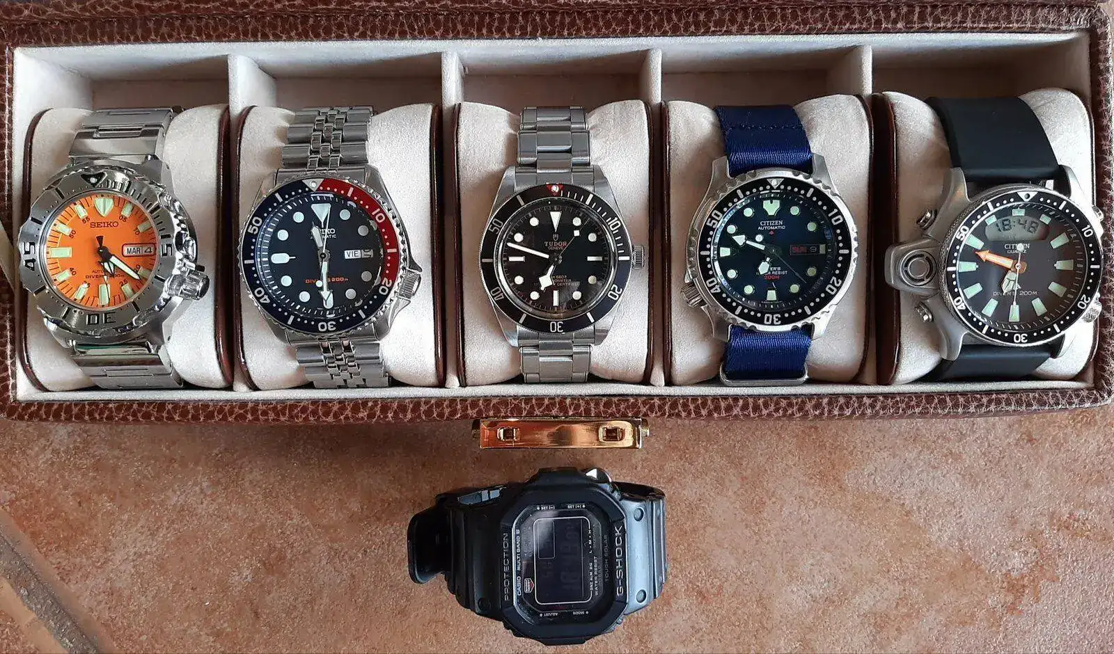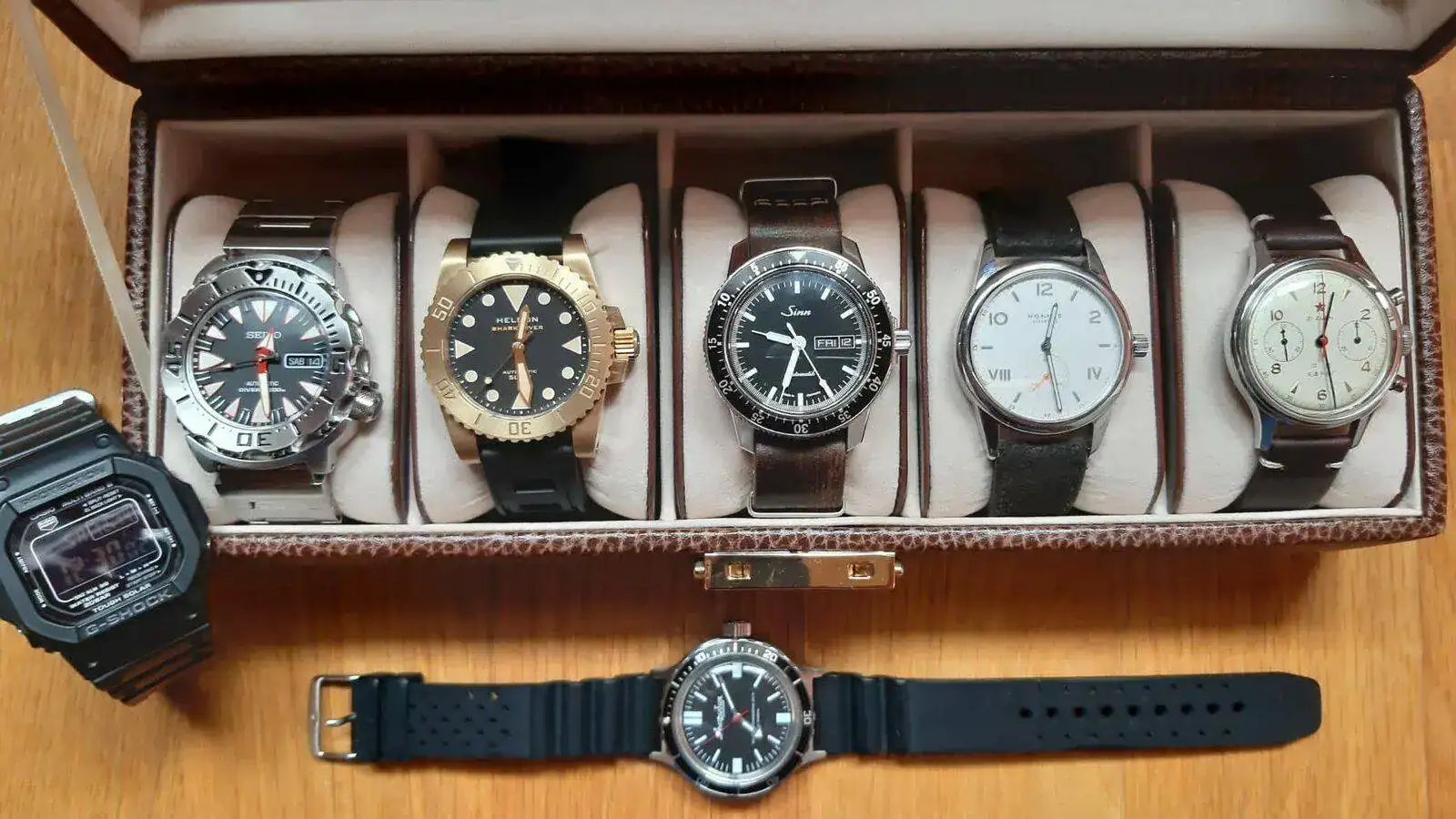 Decir que los cronos rusos, 1963, seiko y citizen bullhead y Galeno están en un estuche a parte...y así parece que son menos...