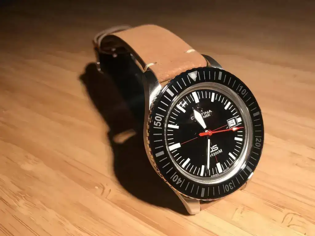 (ya se lo había leído a un compañero pero el reloj estaba en camino).En un primer momento me decidí por ponerle la Nato que viene también de serie y que le queda genial, y comprar una correa de cuero marrón aparte. También escribí a Certina para ver si había varios tamaños y si hubiese posibilidad de cambiar el tamaño de la correa, a lo que me han contestado que vaya a un concesionario Certina y me hiciesen un agujero.