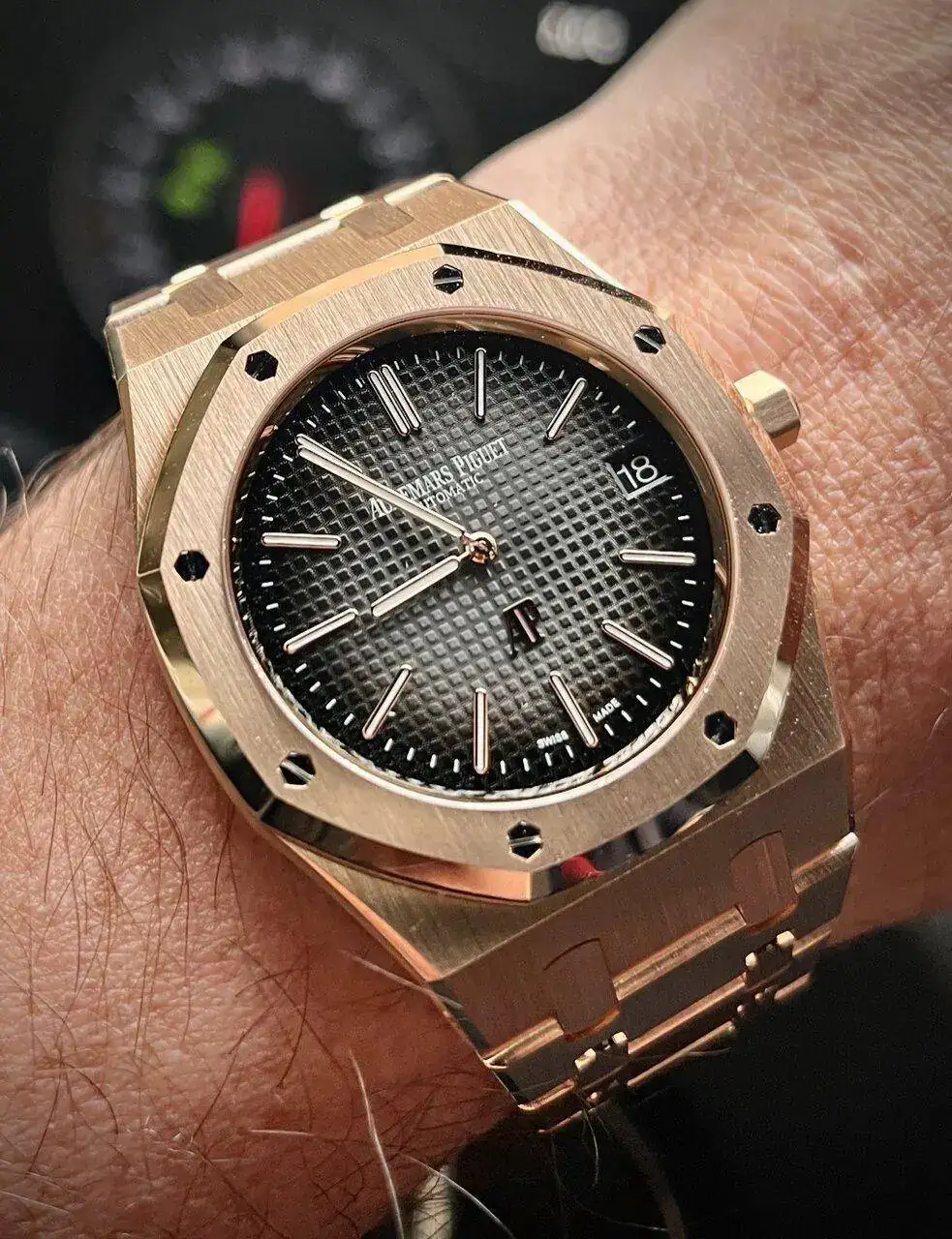 Muy de acuerdo compañero. Ambas cosas le dan mucha potencia y sutileza al mismo tiempo.Menuda preciosidad, me encanta el color de la esfera y cómo queda el oro cepillado a contraste con las pocas partes pulidas.
