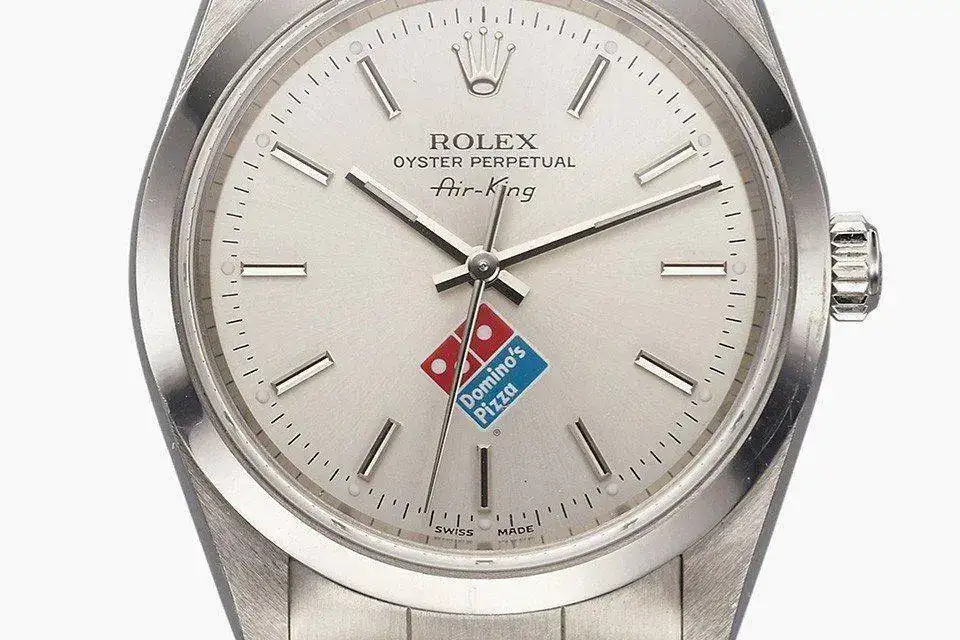 En este foro de versados quizá ya se conozca desde hace mucho tiempo esta historia, pero para decir verdad, yo la desconocía por completo hasta ahora que me acabo de topar con dos fotos de unos Rolex que llevaban tanto en su esfera como en su armis el logotipo de Domino´s Pizza.