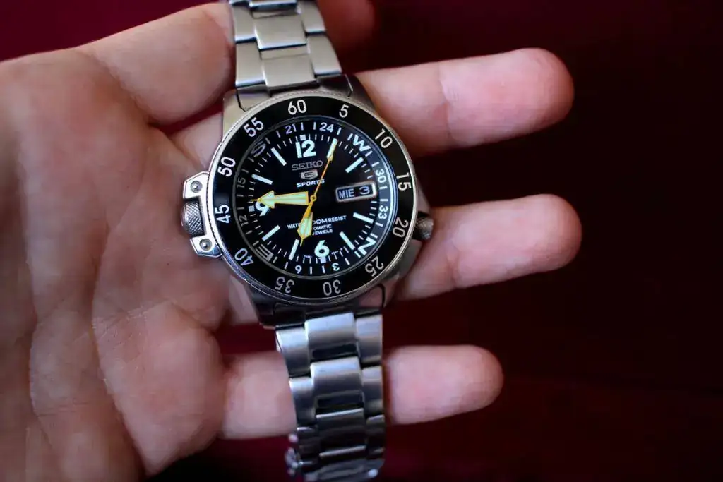 SEIKO SKZ211 aka "Atlas": calibre automático 7S26, 200 metros, bisel interno, bisel de 40mm, caja de 43mm sin coronas, fondo ciego, 49mm entre asas, 13,8 mm de altura y peso con armis (22mm) ajustado de 160 gramos. A este le tengo un especial cariño, ya que fue el primero que compré hace 5 años cuando se me estropeó el que llevaba y me interesé por los mecánicos, como diría Pique, Gracias Atlas, contigo empezó todo...