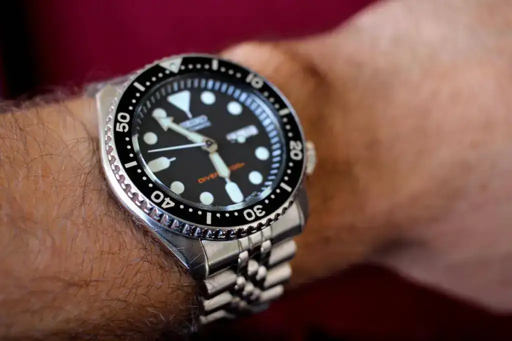 SEIKO SKX007 aka "007": Calibre automático 7S26, 200 metros, bisel de 41mm, caja 42mm sin corona, corona roscada, fondo ciego, 46mm entre asas, altura 13mm, peso con armis (22mm) ajustado 130 gramos. Que decir de este reloj, simplemente es el que yo recomendaría a cualquiera (normal, no enfermo como nosotros) que me preguntara que reloj se compra: barato, bonito, fiable, polivalente, cómodo, icono, una maravilla...