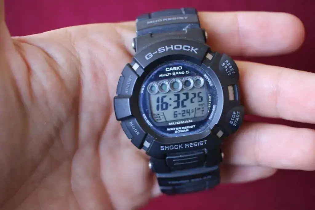 CASIO GW-9000 aka "Cinco ojos": módulo 3050, radiocontrolado, solar, 200 metros, 46mm de caja, 52mm entre asas y 16mm de altura. Lo tengo hace años y es el que me llevo a la playa, al gimnasio, etc. La caja del Mudman es la que más me gusta, y este modelo ya descatalogado de los tiempos cuando casio (2007) no sacaba absolutamente todo con cajas enormes para justificar unos precios cada vez menos racionales (EMHO), mi favorito.