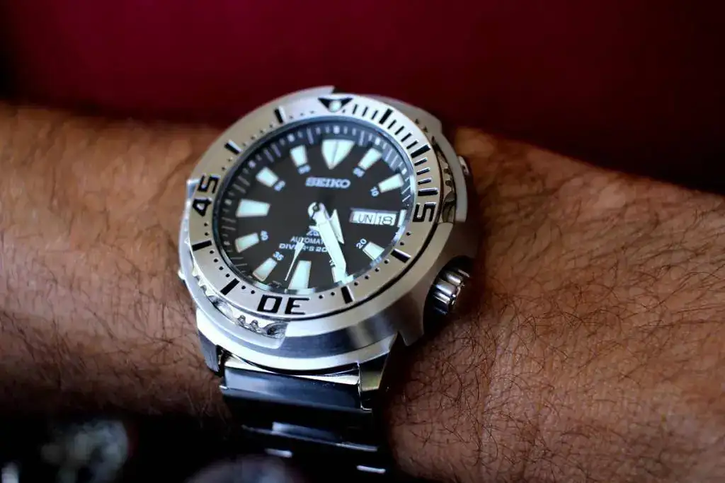 SEIKO SRP123: Calibre automático 4R36, 100 metros, 42mm sin corona, 48mm entre asas, 14,5mm de altura, fondo visto, 150 gramos de peso con armis (22mm) ajustado.