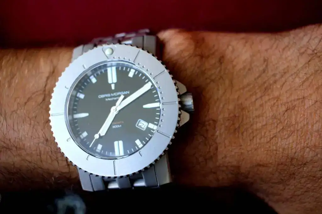 OBRIS MORGAN PRADATA: Calibre aut. Miyota 9015, 300 metros con válvula de helio, cristal de zafiro de 3,5mm, 44mm de bisel, 43mm de caja sin corona, 52,6mm entre asas, 14mm de altura, peso de 200 gramos con armis (22mm) ajustado. No entraba en mis planes hacerme con este reloj, pero apareció en el FCV y desde que llego me ha robado el corazón, es un reloj extraordinario para su precio, bien acabado, calibre preciso, muy contundente, bonito y encima presentado de forma impecable, en definitiva me tiene enamorado. Una marca que goza de todo mi respeto y a la que pienso seguir atentamente en el futuro.