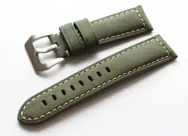Es un reloj pequeño (38 mm sin corona) y asas de 18 mm, le compré una correa marrón oscuro que probé en un Seiko al que le queda bastante bien, pero este reloj no lo veo con estos pantalones.