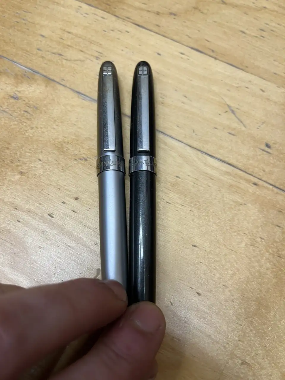 La mía se diferencia de esta en el labio inferior del capuchón que es dorado y el plumín, que también es dorado y grabado con el logo YSL.