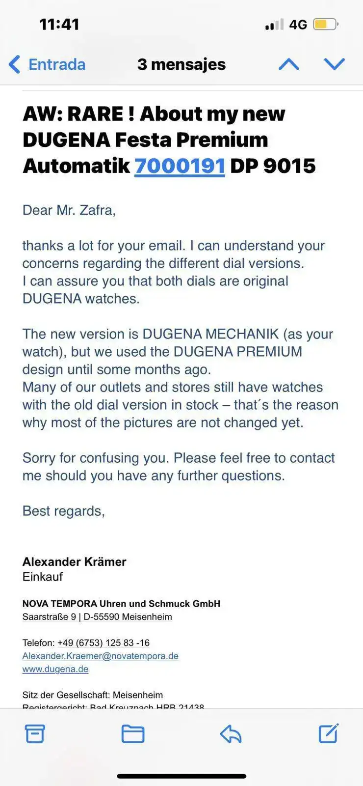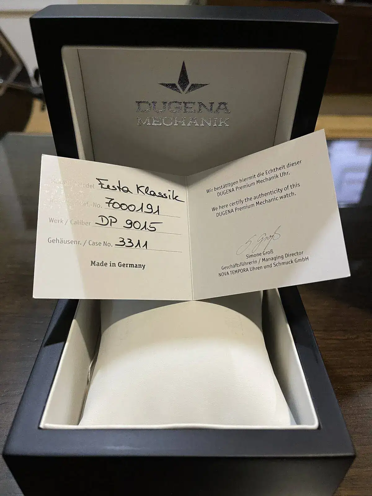 Hoy he recibido un Dugena Premium Festa Automatik ( calibre Miyota DP9015). Pongo el link a la página oficial: