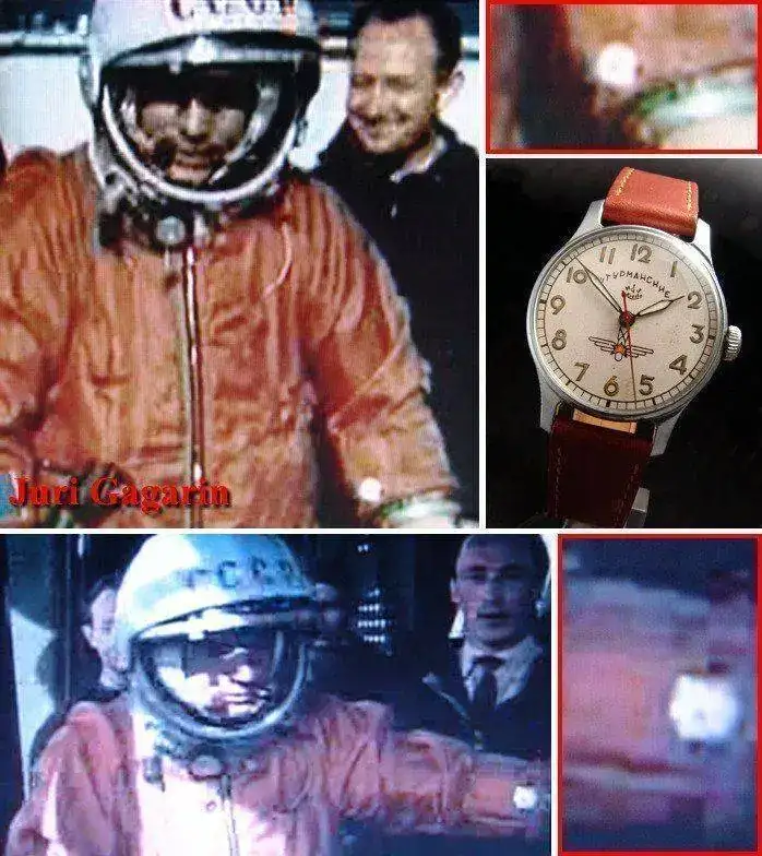 Juri Gagarin el 12 de Abril de 1961, 06:07 GMT, que a los controles del Vostok 1 llevaba un STURMANSKIE, (o ШТУРМАНСКИЕ en Cirílico); el primer reloj en el espacio