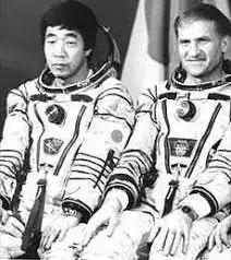 Toyohiro Akiyama, cosmonauta y periodista, lleva uno en la siguiente imagen.