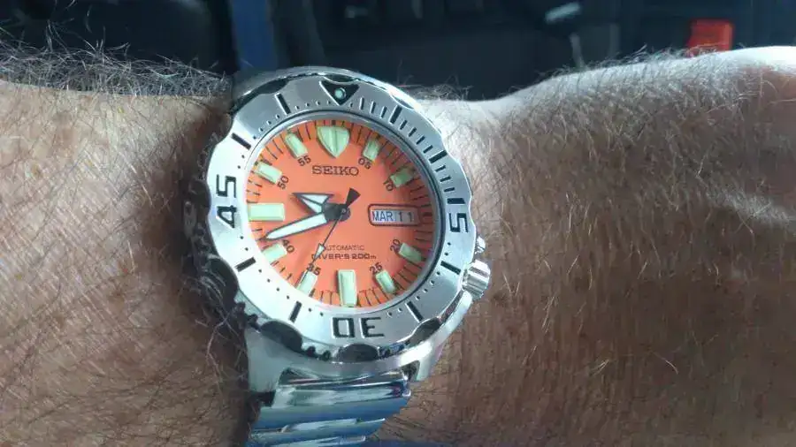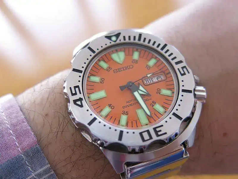 Mi última adquisición, el Seiko Orange Monster nuevo (4R36) que ahora mismo es el 50% de mi colección de divers (el otro es el Citizen NY0040 que lleva conmigo desde 1998).