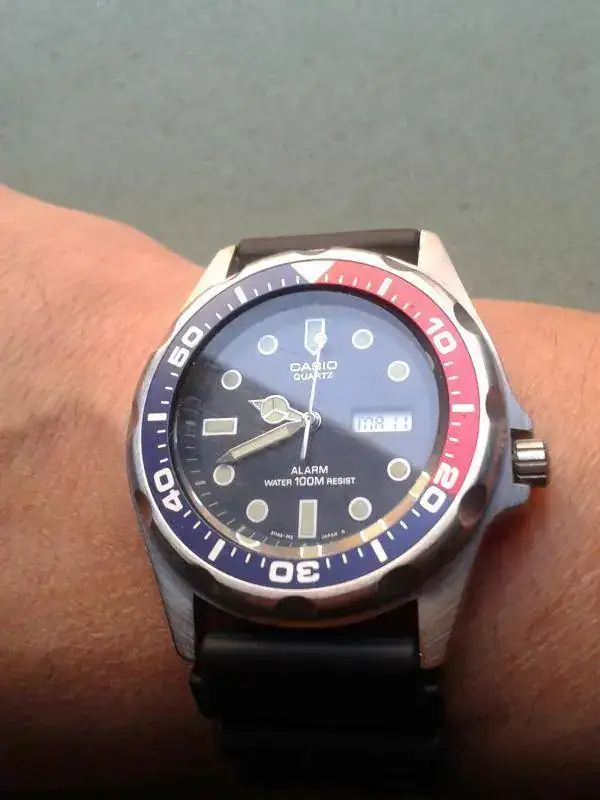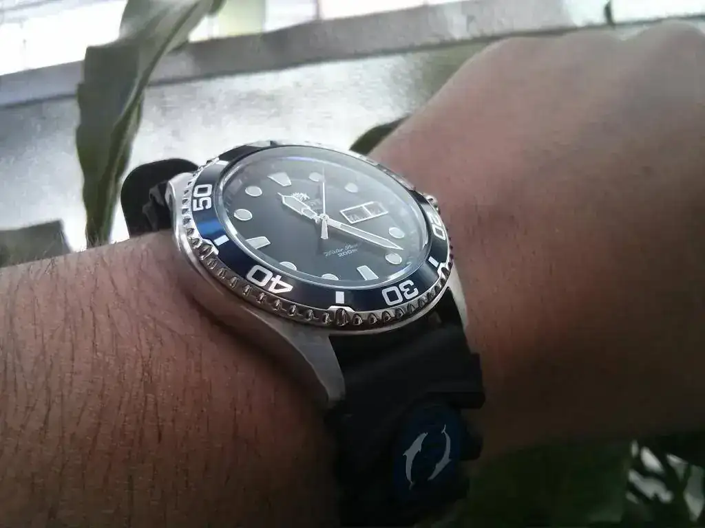 Es el citizen NY0054-04LB con dial azul precioso, está también con dial negro. Está prácticamente descatalogado, pero es una delicia. Un buen diver, caja y bisel de titanio, corona a las 8, 40mm, gran lumen, muy cómodo y ligero.