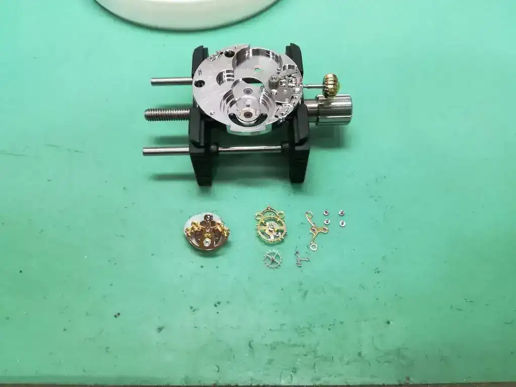 Como puedes ver son tres piezas y según mi relojero, un cronografo es mucho más complejo de fabricar y de arreglar. Los chinos no son tontos, solo están vendiendo la complicación a su justo precio. Luego uno puede mejorar los acabados, el pulido de los rubíes, de los pivotes, mejorar las tolerancias y los materiales utilizados, pero no se justifica la enorme diferencia de precio.