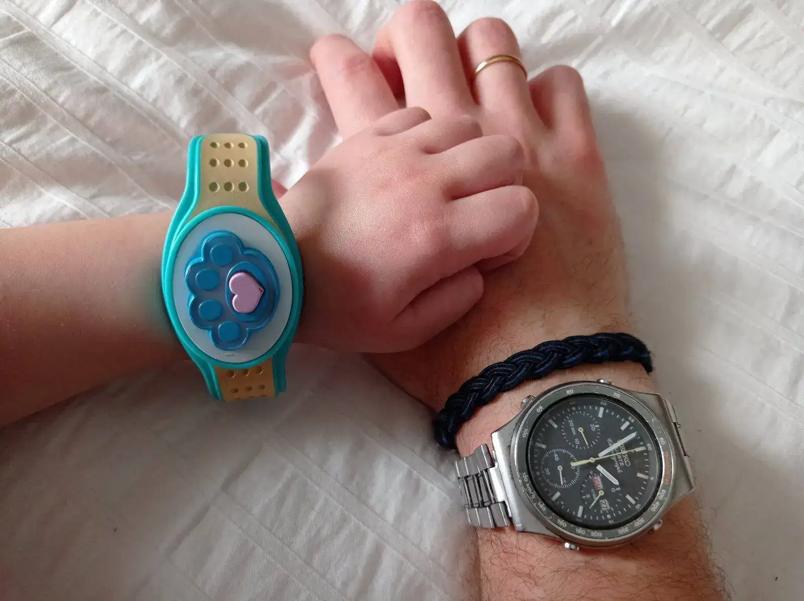 La mediana lleva smartband "porque mola mucho papá, puedo ver la hora por la noche" (háblale tu de la superluminova que a mí me da la risa).