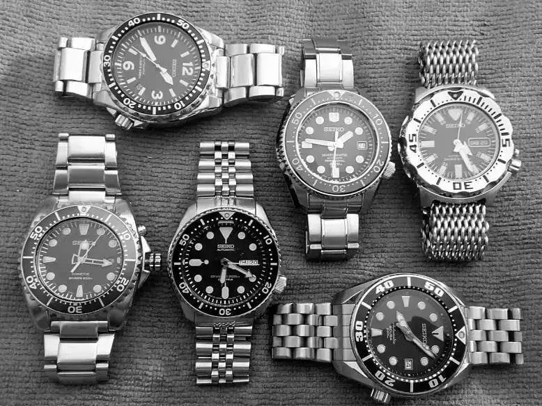 A ver, lo que tengo ahora: MM300, Sumo negro, Tortuga negro, 007, Seiko 5 Piston, kinetic ska565, solar pilot crono.