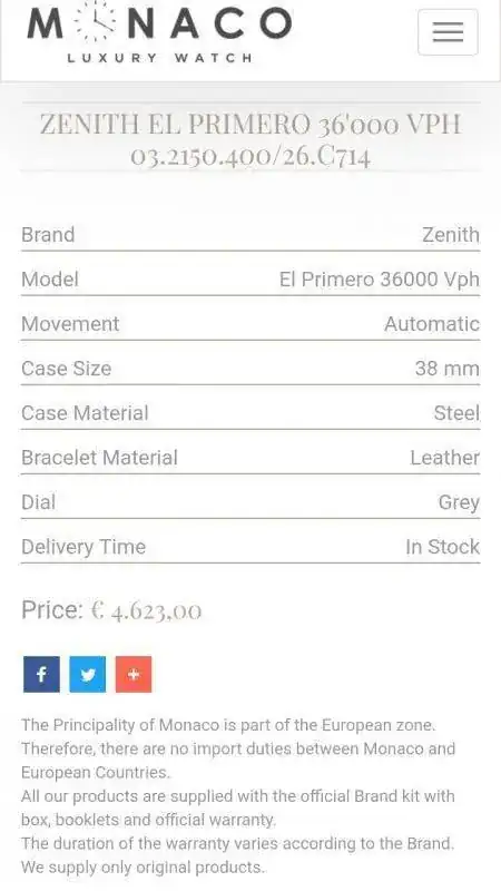 Es “trusted seller” en Chrono24, puedes utilizar el pago seguro de la plataforma (supongo que saldrá algo más caro que en la página), tiene muchos votos positivos y precios imbatibles, lo malo que los vuelos a Mónaco son caros para recoger las piezas en persona.