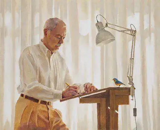 Además de usar atril, escribe de pie, pero no sé si es más cómodo.