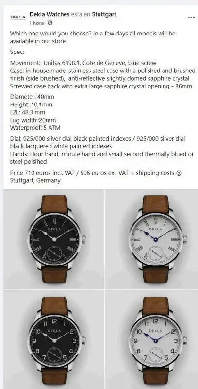 El Stowa con características similares, incluido dial de plata vale 1.369,75 € y hay que esperar 4 semanas. ¿El aporte del dial de plata es estético? , las fotografías no alcanzan a mostrar la diferencia con un dial blanco pintado. El DEKLA me parece una buena alternativa, es más barato, pero seamos realistas, también es un reloj que está abajo en marca, tangibles e intangibles y reventa.