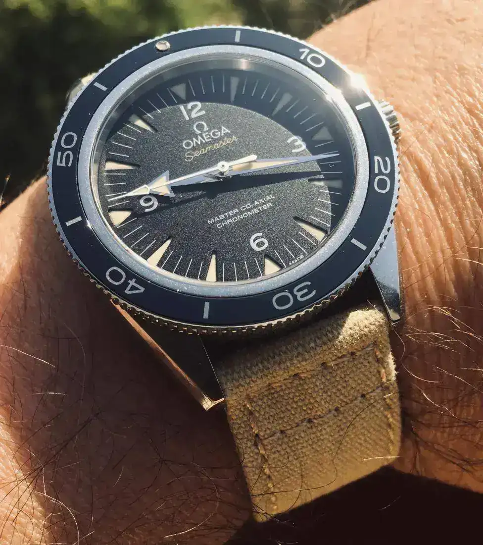 . Aquí, mía (los puñeteros de Omega se empeñan en hacer relojes con 21 mm entre asas, como este; por eso tuve que cambiarle los pasadores. Pero los que trae son estupendos)