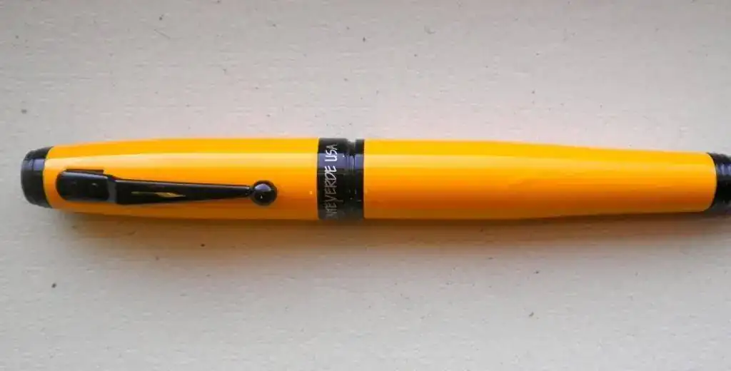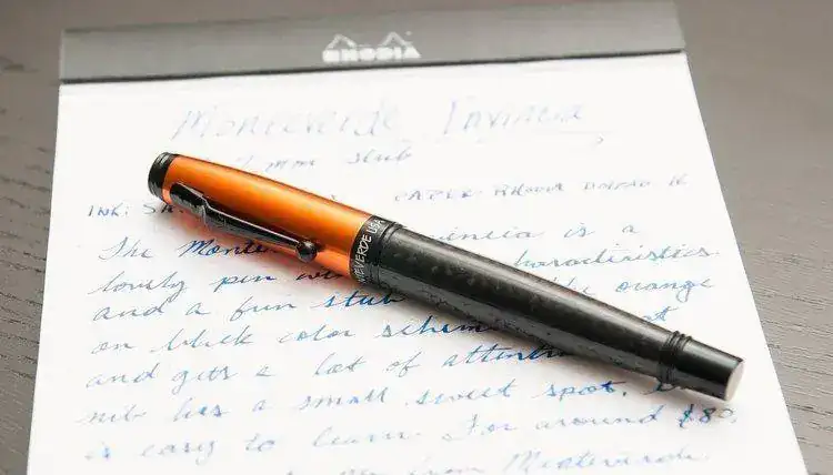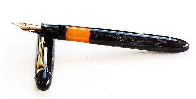 Busca "Orange fountain pen", espeficicando la búsqueda a "todo el mundo" y ajustando tu precio. Verás que hay tropecientas. Si quieres quitarte la morralla de las más baratas, ajusta el precio mínimo a 20€ por ejemplo, y verás que te salen plumas de mejor calidad. Yo he visto cosas chulas así en una primera búsqueda. Si ves alguna parecida a lo que quieres pero no te convence, siempre puedes poner la foto aquí y ver si alguien conoce modelos parecidos. El naranja...