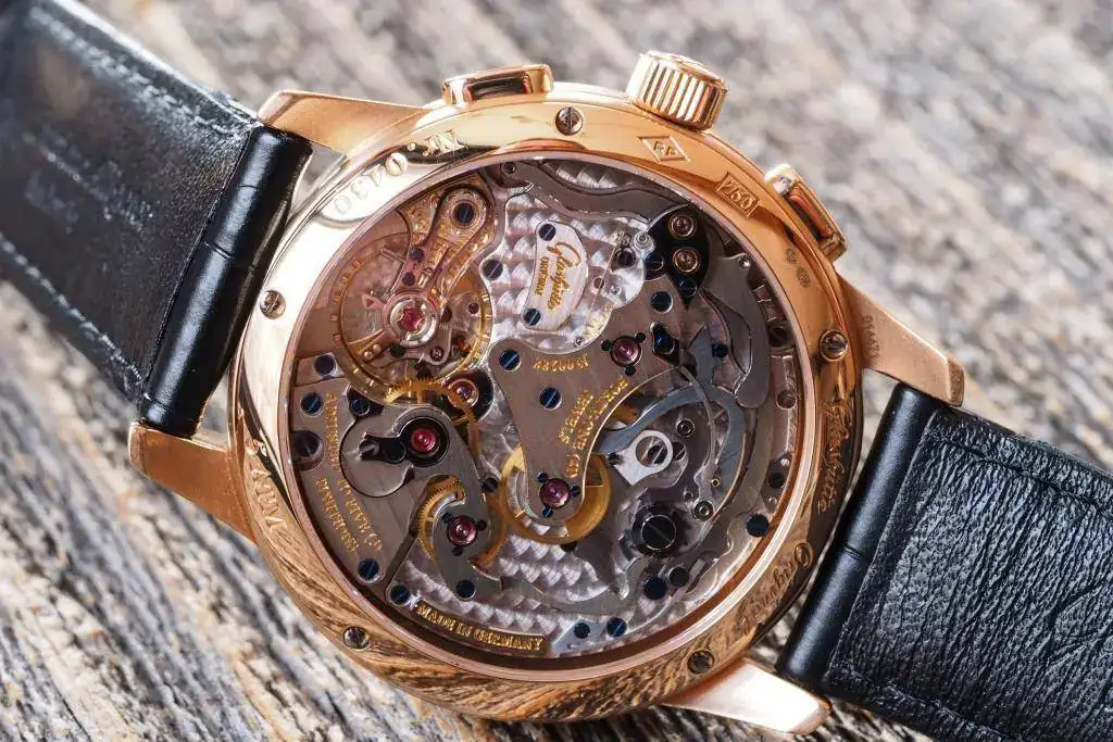 Tal es la apuesta de la empresa por los calibres propios y la innovación que ha creado su propia escuela de relojería, la Alfred Helwig School, donde entre otras cosas se enseña a los alumnos a crear máquinas herramienta porque muchas de las creaciones de la casa requieren adaptar o crear máquinas ex-profeso no existentes en la industria. Os dejo una foto del calibre del panograph, prestada de nuestros amigos de hodinkee, para que os hagáis una idea: