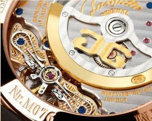 - los acabados son espectaculares: detalles como el uso de plata alemana para la base del calibre (la placa 3/4 característica de la marca), los "chatones" (como se traduce "chaton" al español?) de oro para sujetar los tornillos azulados a mano uno a uno (aquí no se pinta ni se tiñe nada!), los diales espectaculares que realizan en su propia fábrica en Pforzheim. Un muy buen ejemplo son los diales de la colección Sixties que Ankor muestra arriba. Os recmiendo encarecidamente ver el reportaje del viaje de Antón a la fábrica (no se como se pone el enlace aquí) Como corresponde a una casa de alta relojería cada pieza, visible o no, esta acabada y decorada a mano. Los caracteristicos cuellos de cisne y los grabados que los acompañana son muy característicos (como podeis ver en la foto adjunta) y demuestran la calidad del trabajo realizado. Os dejo el enlace a unos videos explicativos: https://m.youtube.com/playlist?list=PLXQ2esU8W6oqngyEHbIeTsCj0NcAASe5j
