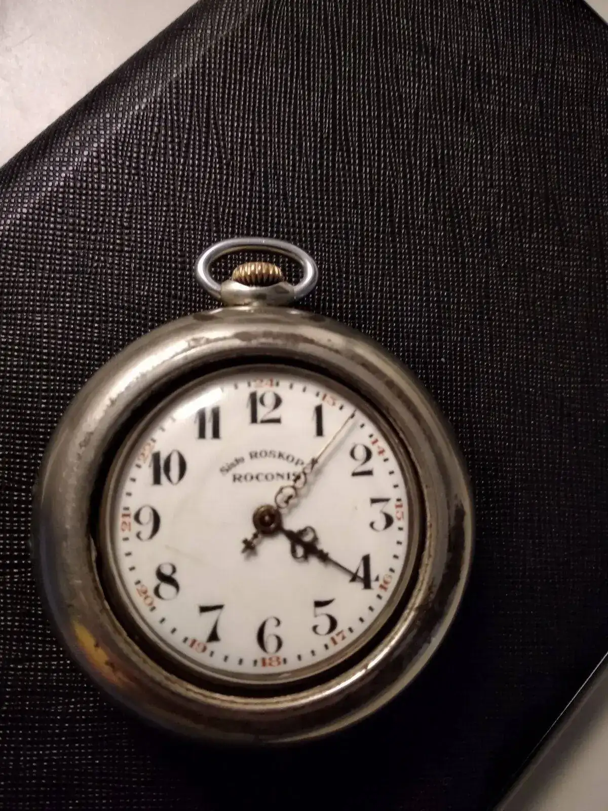 Acaba de llegar a mis manos un reloj de bolsillo Roconis con movimiento Roskopf de principios del siglo XX.