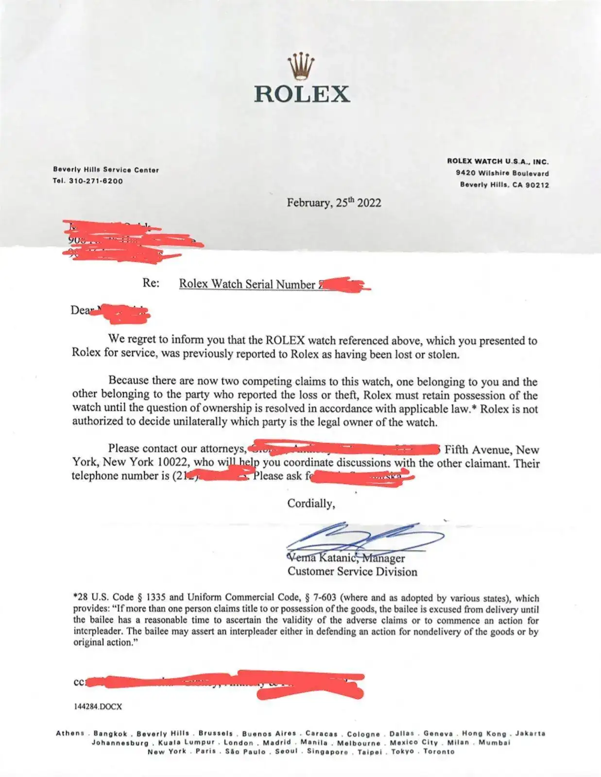 La Guardia Civil reclamado el reloj del CV en UK, ni respuesta. Tambien mandado la policia inglesa al CV, nada! Y no solo era este reloj que encuentrado en Londres, otro tenia el tasador de la casa Phillips ( Maudsley ) subastas en la muneca y lo ensenado en Instagram mi reloj.