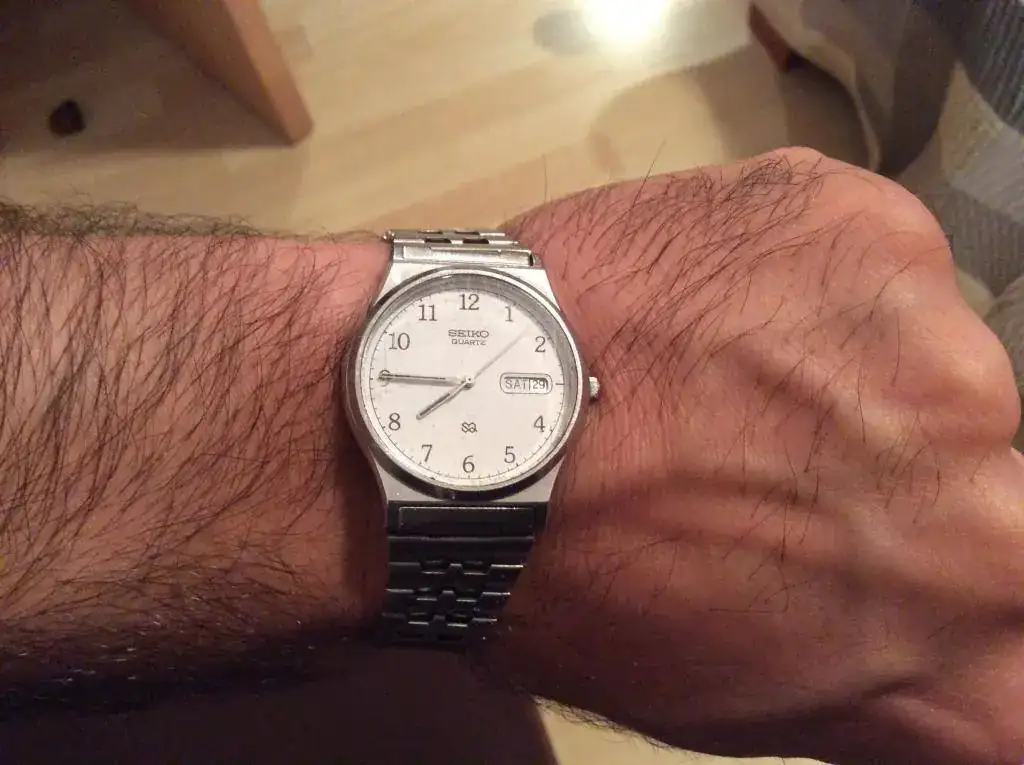 Aunque tuve una serie de relojes seiko (perdí uno de los primeros seiko seiko digitales que se podían comprar en España) y casio digitales, el mío es un Swatch que me regaló mi tía en Francia cuando tenía unos 14 años. Le he cambiado la pila recientemente y sigue funcionando (han pasado 30 años, ejem...). La correa no ha sobrevivido al paso de los años. He intentado averiguar el año de fabricación pero no lo encuentro por internet.