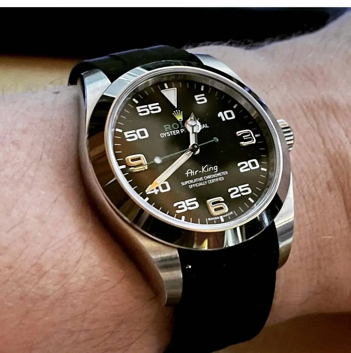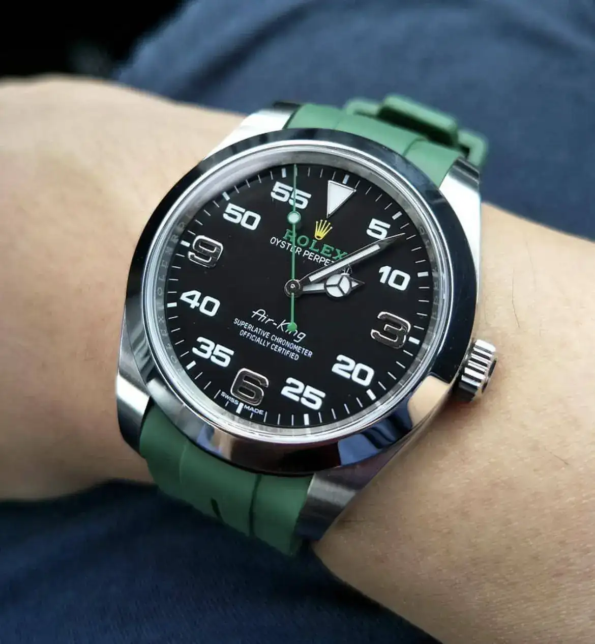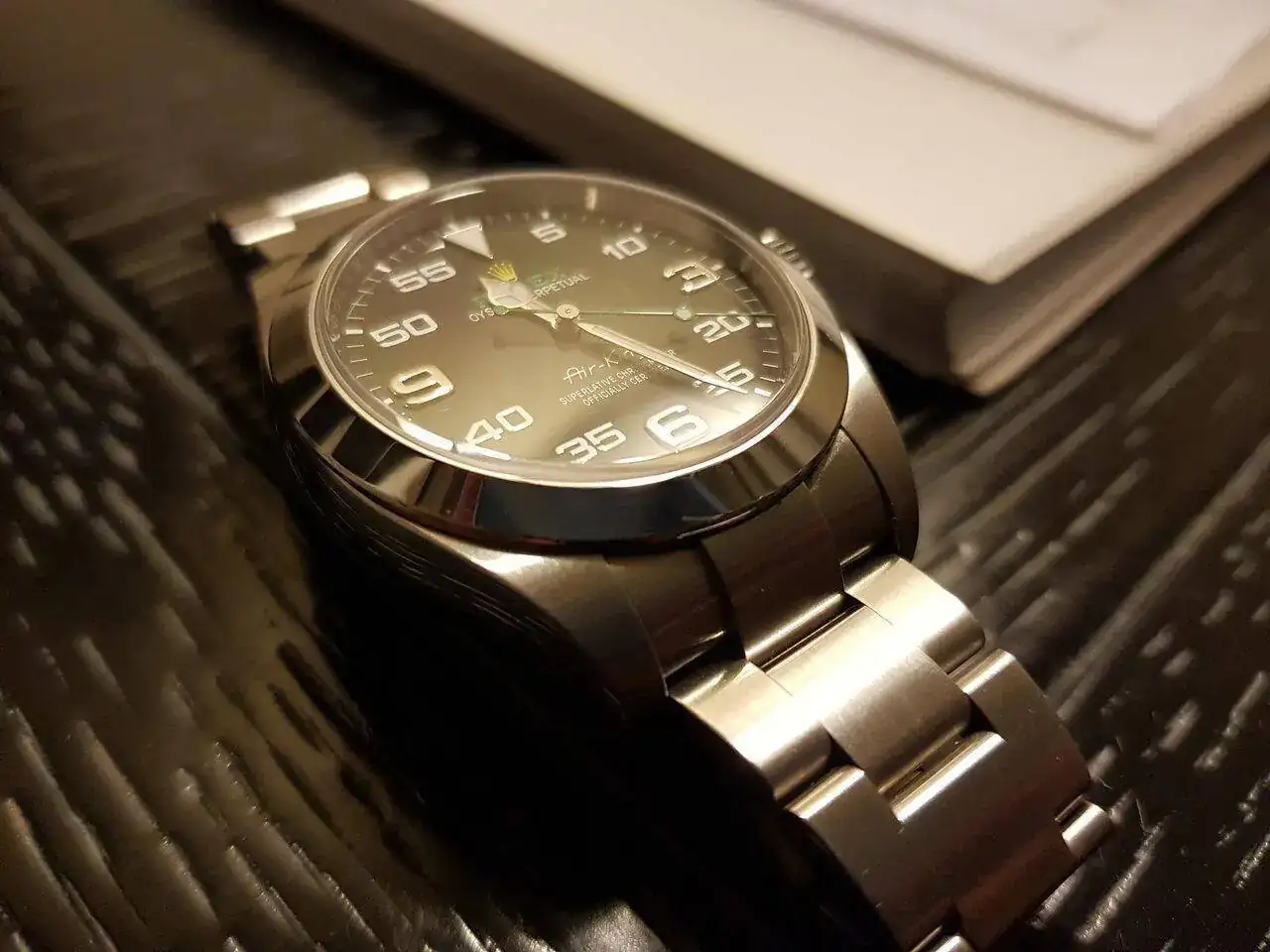Estoy pensando en sustituir el brazalete metálico del Air-King por una correa, quizá color verde, negro o incluso amarillo. Respecto al material he pensado en primer lugar en cordura y en canvas (la piel quizá reste ese toque informal que estoy buscando).