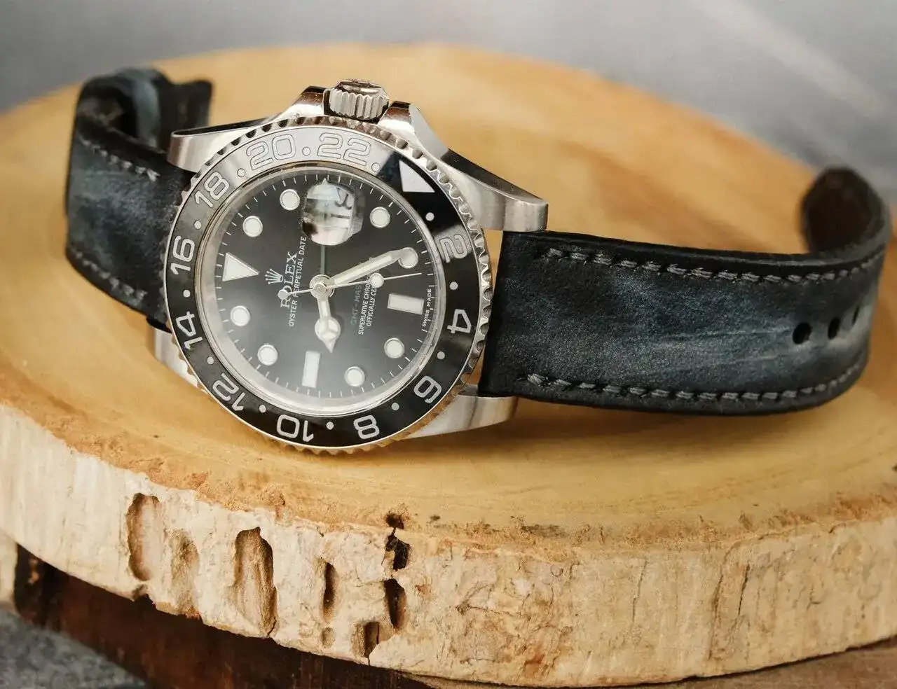 Mal no le queda, a mi me gusta más con su armis original, pero reconozco que le quedan bien, si he de elegir, la negra me gusta más.Mirando por internet he descubierto que hay gente que al Submariner y al GMT le ponen correas de piel.