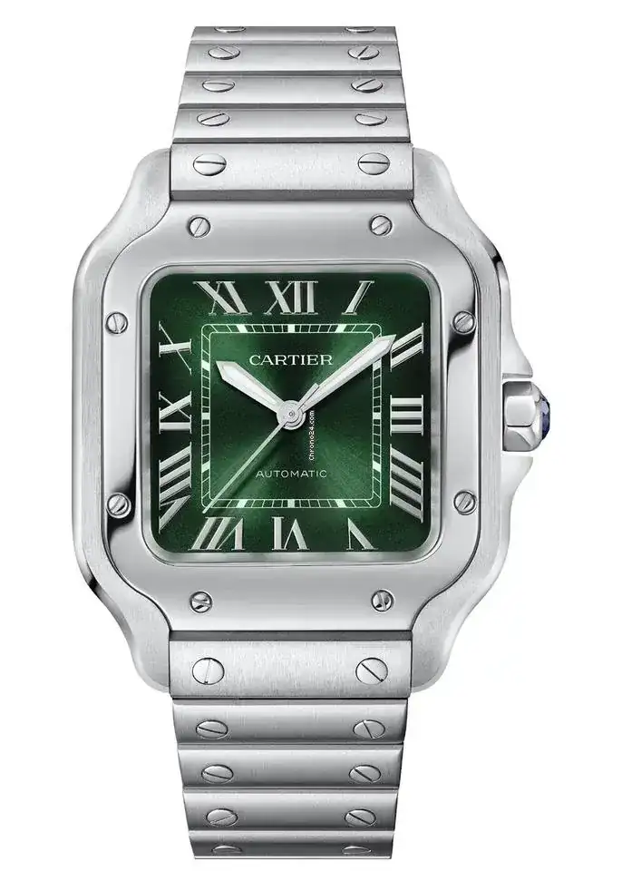 Por otro lado y por cambiar de tercio también me gusta el Cartier Santos XL con dial verde: