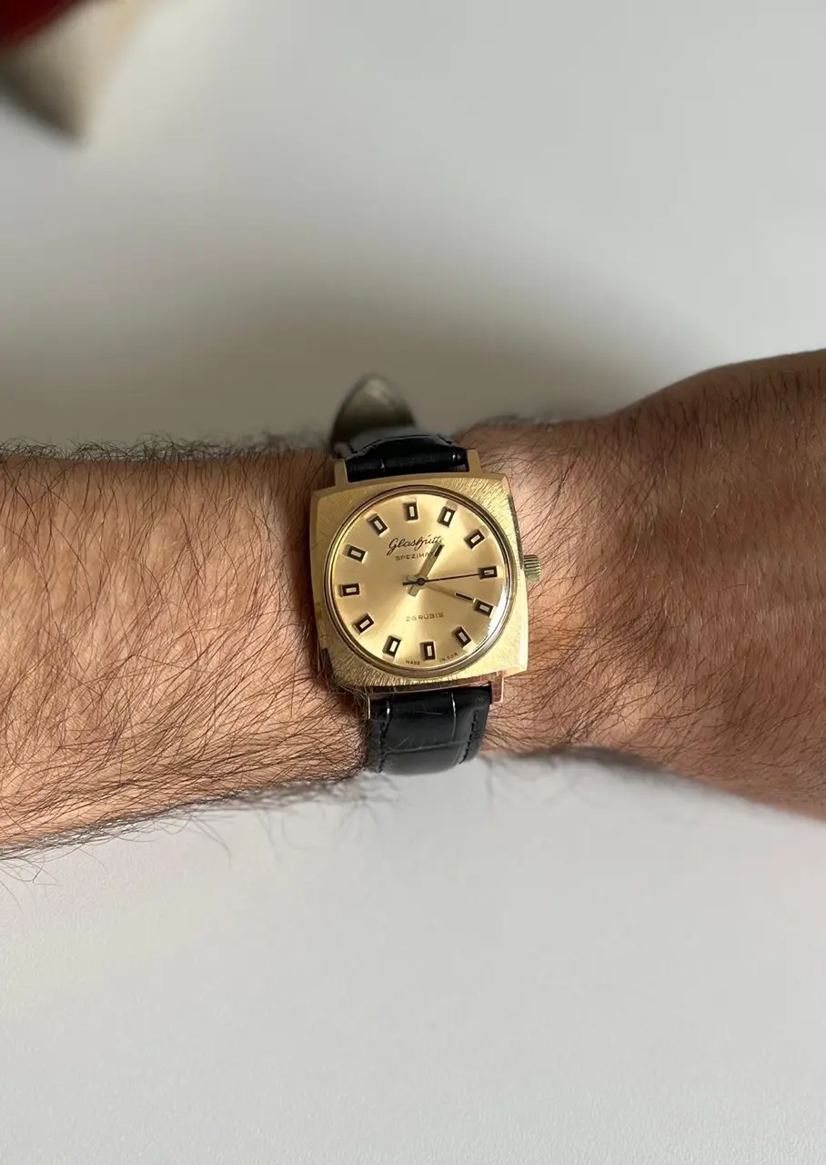 Al Glashütte Spezimatic cuadrado que fue el menos votado, se le unió en su viaje un viejito Sinex cuya función de alarma me parece muy curiosa. Ambos funcionan en principio perfectamente, ando probándolos estos días para ver si desvían mucho, que no parece por el momento y la verdad, es que estoy satisfecho con la elección. Es evidente que esa caja tan cuadrada del Glashütte, junto con su dorado, lo hacen poco ponible o al menos, menos que otros. Pero es que todas todas, iba a salir poco y teniendo en cuenta su gran estado de conservación, creo que cumple bien lo que buscaba. No sé si seguirán por siempre, si saldrá uno u otro o ambos, pero ahora mismo, he saciado mis ganas de tener algún vintage (y en lugar de uno, dos) y si aparece a futuro algún otro que me guste más, pues tocará mover fuera otra pieza.