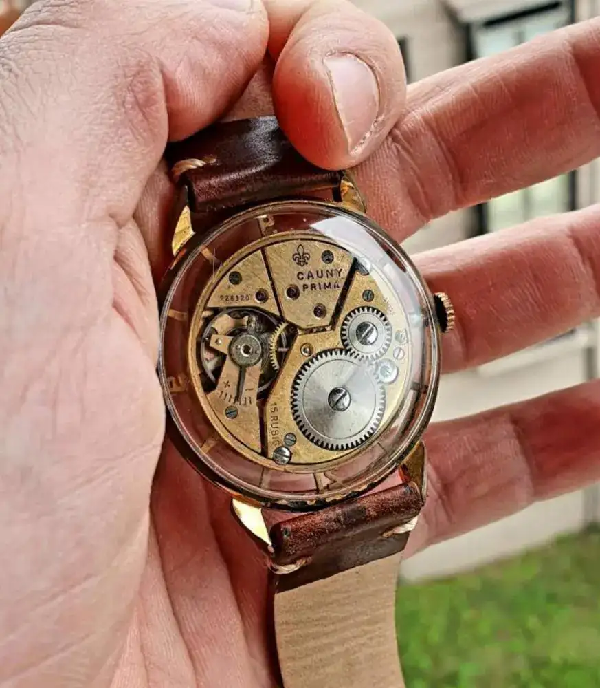 Buenos días equipo. Hoy he abierto la tapa de uno de mis vintage porque se había quedado el piñón enganchado y no podía darle cuerda, sólo podía mover las saetas, total que ha sido cosa de apretar un tornillo, algo sencillo para un "gañán" como yo; y al abrirlo no recordaba lo bonita que era el calibre del Cyma Cymaflex que tengo. Adjunto foto de archivo porque ahora ya he cerrado el mío y por no volverlo a abrir...